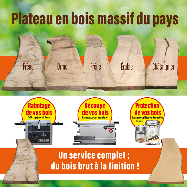 Les bois durs (chêne, hêtre), les résineux et les bois exotiques sont, en majorité, disponibles en autoclave et/ou sec séchoir.